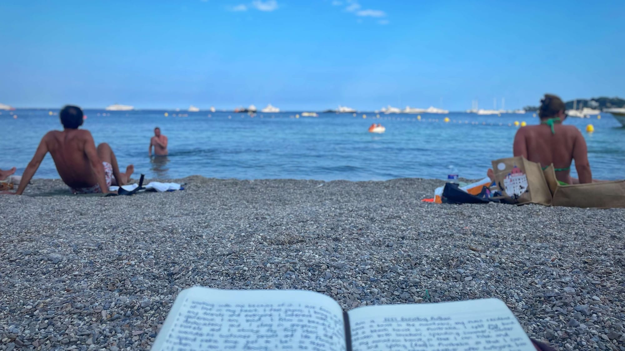 I can’t believe that this is some people’s dream vacation. I can make salty bath water at home – with scented candles, a good book, and no one to disturb me. I think that the French Riviera is perhaps more dreamy if you are spending money to stay in one of the glamorous seaside hotels. But me, I am just trying not to go broke. And so here I am alone on a crowded beach, stewing in sweat and sunscreen, passing the time watching people whose behavior is predictably uninspiring.